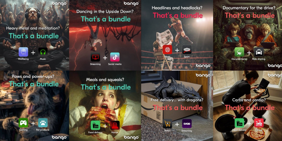 This campaign from Bango throws subtlety out the window. It’s built around the idea of personalized subscription bundles and leans heavily into over-the-top visuals and AI-generated everything (visuals, texts, and voiceovers). The videos run loud and wild, bursting with neon colors, layered textures, and movement that doesn’t exactly help readability.