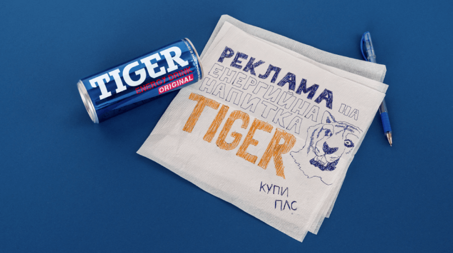 Since really good designs can come from anywhere, I will show you something that originates from Eastern Europe. This is the Bulgarian campaign for the Tiger Energy Drink, and what makes it epic is that it absolutely doesn’t care about being pretty. Or polished. Or consistent. In fact, this campaign leans into being as low-effort as possible on purpose. It has graphics drawn on a napkin, a pen left in the shot, and scribbled text that barely fits the frame.