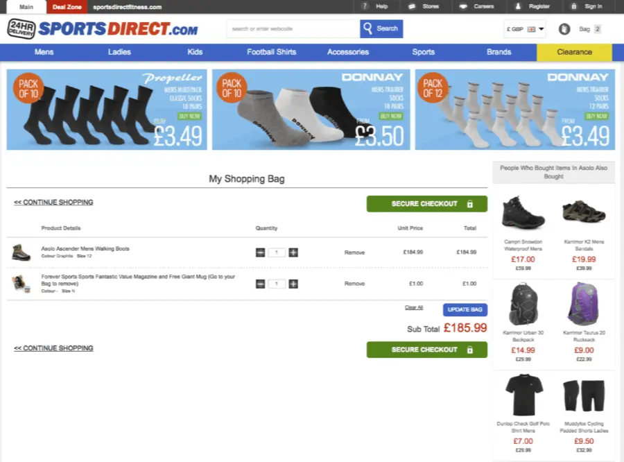 Design ethics obfuscated consent example by SportsDirect sneaking an unwanted magazine subscription. Source: Deceptive Patterns
