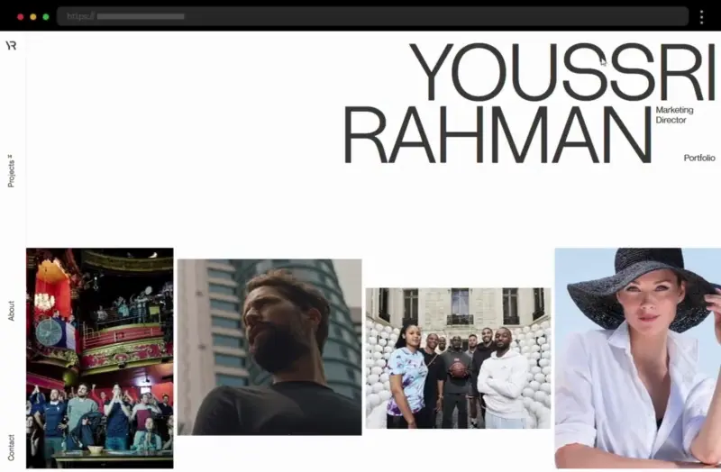 Youssri Rahman’s portfolio uses a clean, minimal design with elegant white space and smooth hover effects that highlight creative projects. The simple layout and image carousel make navigation effortless and engaging.