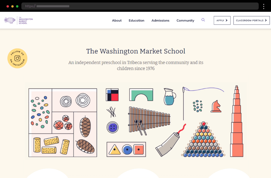 Playful animations and bursts of color keep this one-page site lively. Short, focused text makes the design easy to digest.