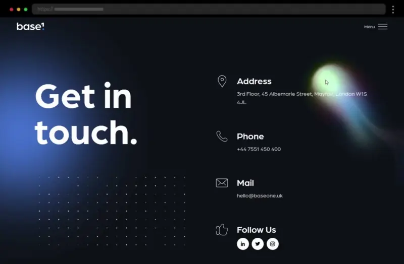 Base One’s “Get in Touch” page combines simplicity with style. A clean, modern form, multiple contact options, and intuitive design make connecting easy and effortless.