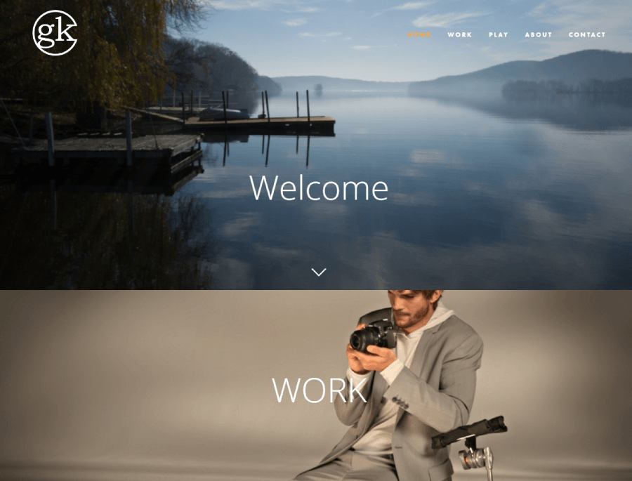 Focus Kpture’s WordPress photography website uses scattered hero images, parallax effects, and a dark background that makes the artwork stand out.