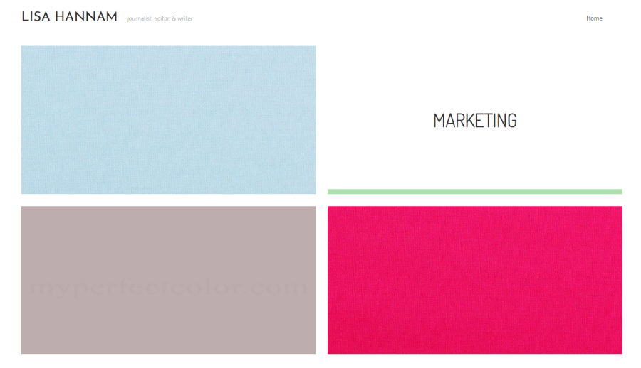 A content-driven marketing portfolio divided into clear sections for journalism, social, and marketing projects, laid out in a digital magazine style.