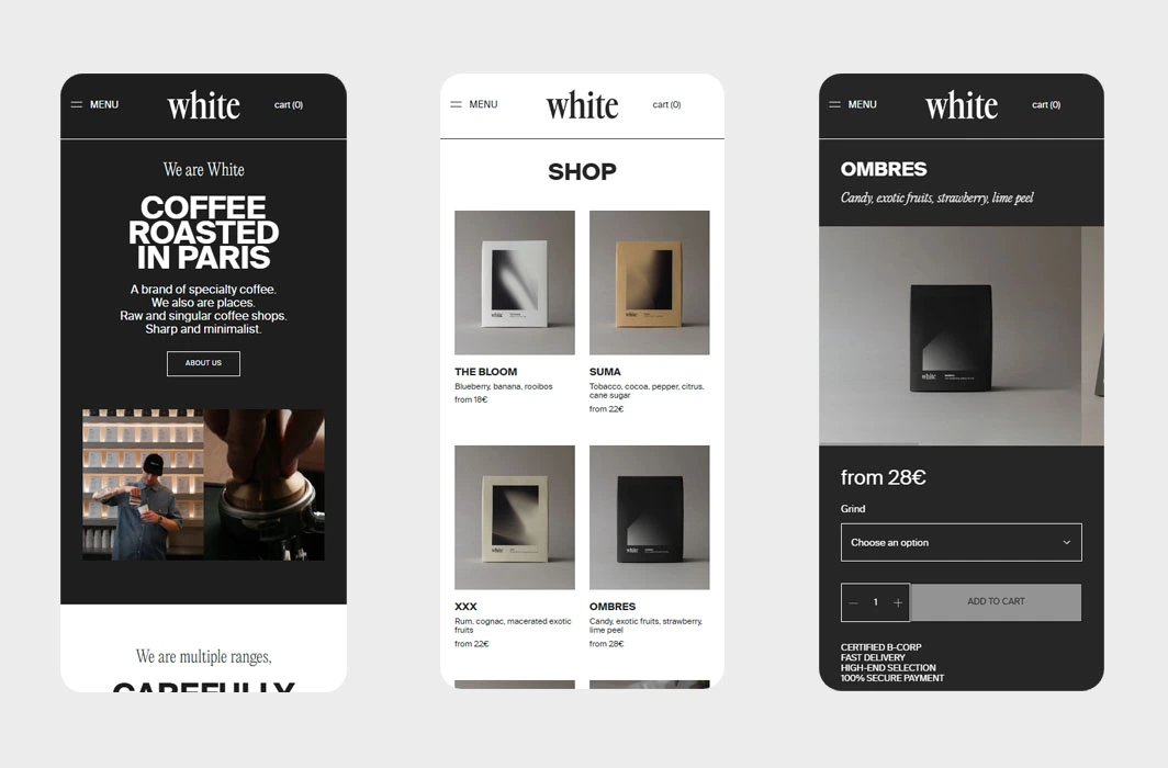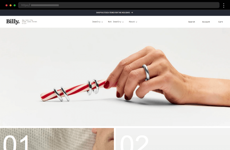 Stillwater’s homepage uses an unorthodox carousel to pull users deeper into the site. The minimal style is paired with flashy aesthetics, while WooCommerce powers its online store.