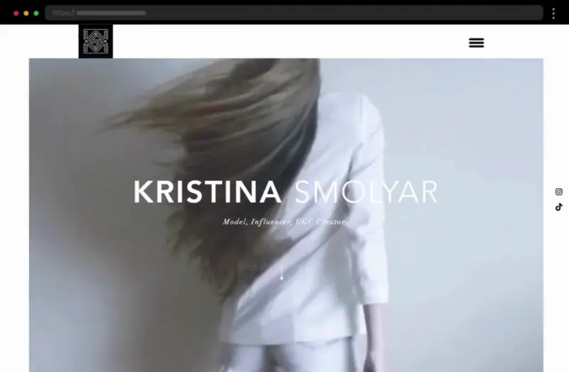A refined, minimal portfolio with high-resolution photos, subtle typography, and a personal bio that adds depth to her professional brand.