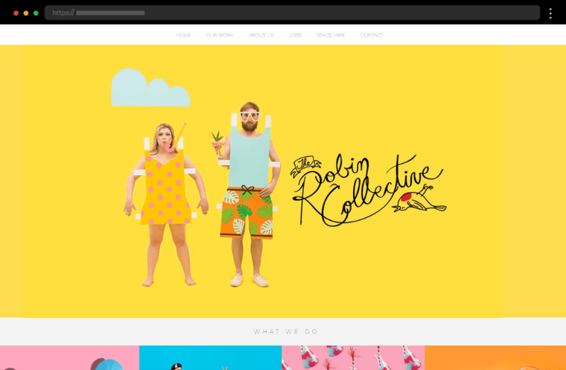 The Robin Collective’s bold, whimsical design uses vibrant colors and playful elements to capture the agency’s fun, creative personality.