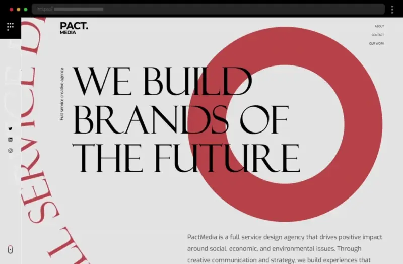 PACT Media’s modern website pairs serif and sans-serif fonts beautifully, using bold headings, clean layouts, and strong contrast for a readable, professional, and stylish design.