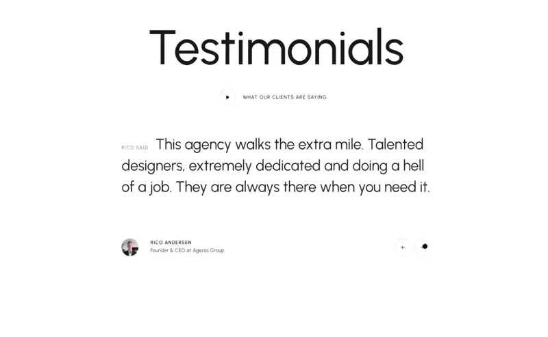 BlackFish’s testimonial slider blends seamlessly with its minimalist design. Smooth transitions, clean quotes, and real video testimonials keep things polished and authentic.