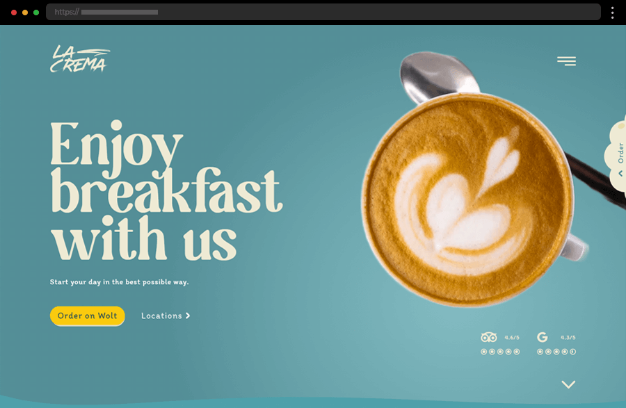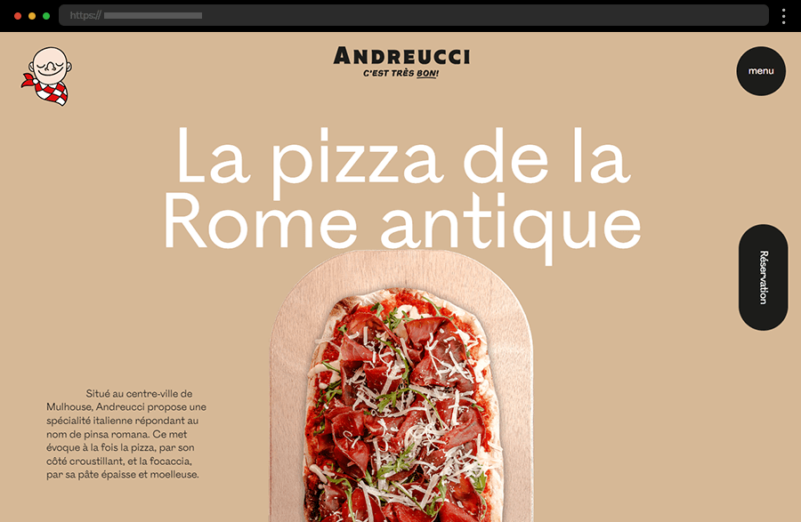 Fabbrica’s dark-mode design suits its Parisian Italian restaurant perfectly. Playful touches like hover effects and a custom “Italian hand” meme preloader give the site personality and warmth.