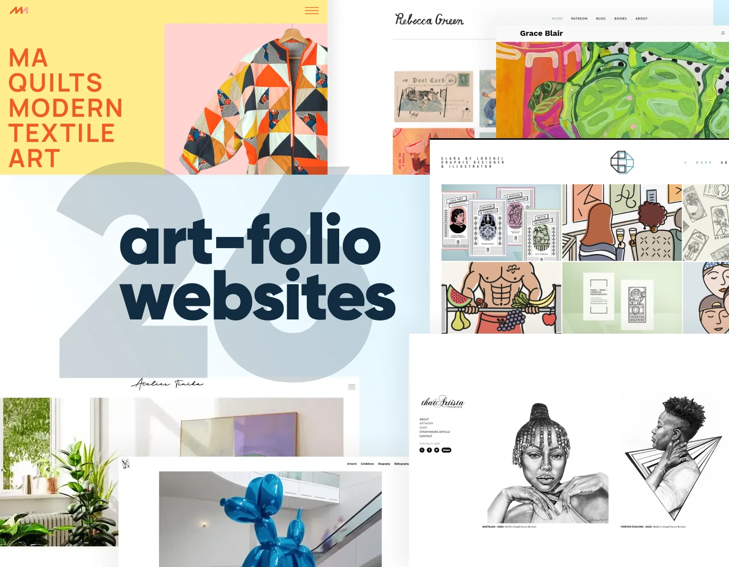 An art portfolio should feel like a gallery. These examples use creative layouts, experimental typography, and bold visuals to spotlight each artist’s unique voice while keeping the browsing experience smooth and immersive.