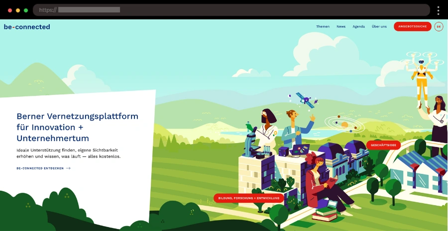 Be Connected’s dynamic site shines with bold colors, animated vector illustrations, and horizontal scrolling, delivering a fun and energetic user experience.