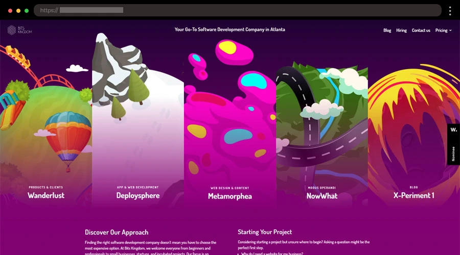 Hadaka’s scrolling website bursts with color and motion, featuring vibrant illustrations and playful effects that respond to scrolling, creating an engaging and creative digital experience.