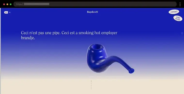 Buyck Veth’s professional scrolling site blends beige and blue tones, clean serif typography, and smooth 3D animations for a refined yet engaging browsing experience.