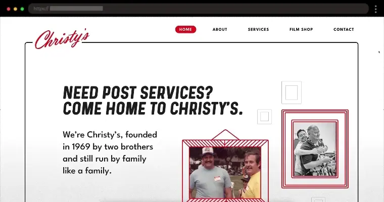 Christy’s vintage-inspired website combines bold colors, classic movie visuals, and smooth animations to reflect decades of expertise in film and post-production.