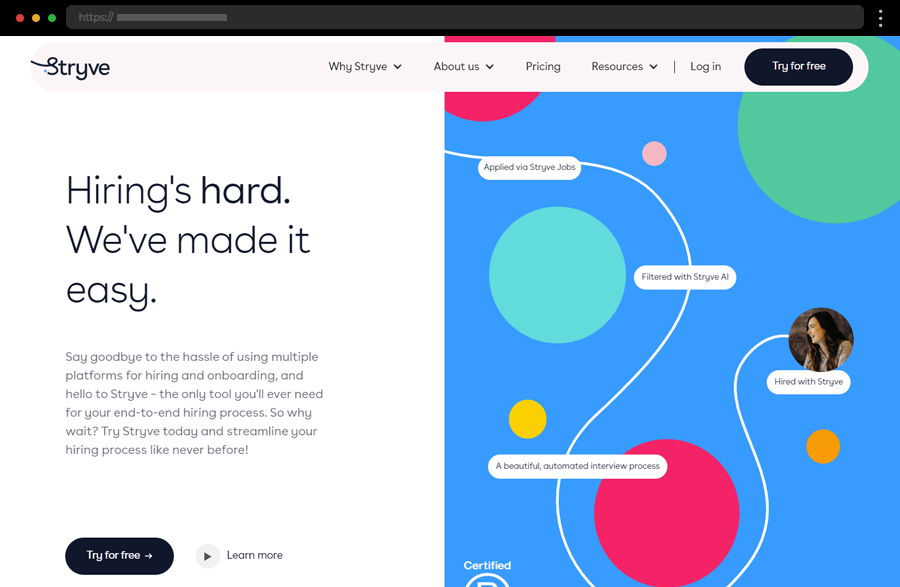 Stryve stands out with a colorful, modern design and smooth navigation. Bold visuals and easy access to detailed info make exploring its hiring tools both engaging and user-friendly.