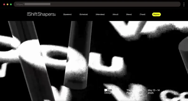 Bold black-and-yellow visuals, playful animations, and a clean layout give this design conference page an energetic, modern feel. A standout example of creative event branding.