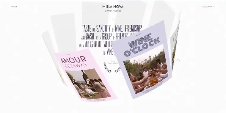 Chapter by Millanova’s elegant 3D website showcases bridal gowns through fluid animations, interactive cards, and cinematic videos, creating a dreamy virtual runway experience.