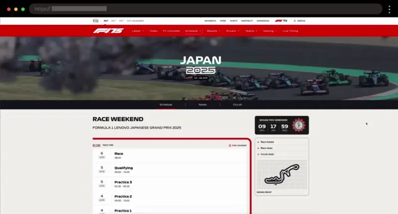 Dynamic visuals, bold typography, and a detailed circuit map create a thrilling experience for racing fans. A top landing page example for sports and live events.