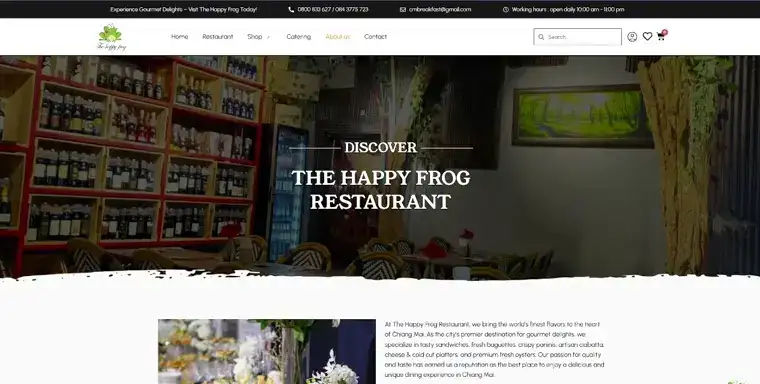 The Happy Frog’s About page feels as fresh and inviting as its menu. Warm visuals, friendly copy, and flavorful storytelling perfectly reflect its gourmet dining charm.