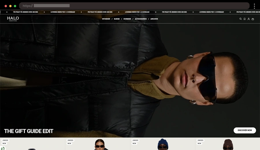 Halo’s site uses bold hero videos, clean images, and minimal text to showcase apparel stylishly, while intuitive navigation and a simple checkout enhance the shopping experience.