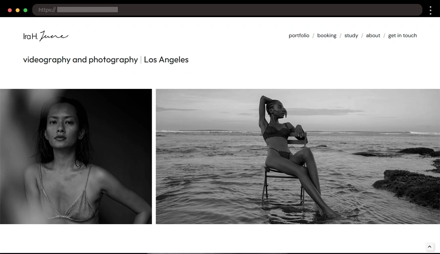 Ira June’s portfolio uses a minimalist layout with bold visuals and plenty of white space, letting her photography take center stage in a sleek, modern design.
