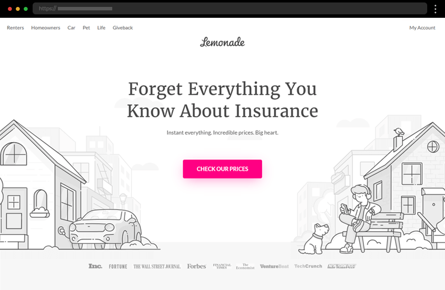 Lemonade’s playful, illustrated insurance website combines vibrant visuals, clear CTAs, and instant chatbot support to make getting coverage feel simple, friendly, and fast.