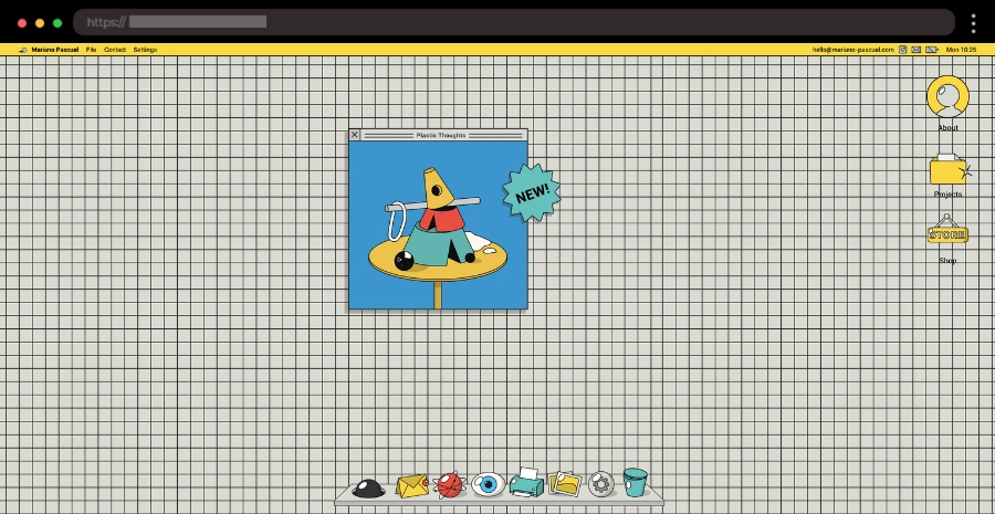 Mariano Pascual’s vibrant site is a mix of a squared notebook background, dynamic shapes, and retro aesthetics for an avant-garde, 80s-inspired digital art experience.