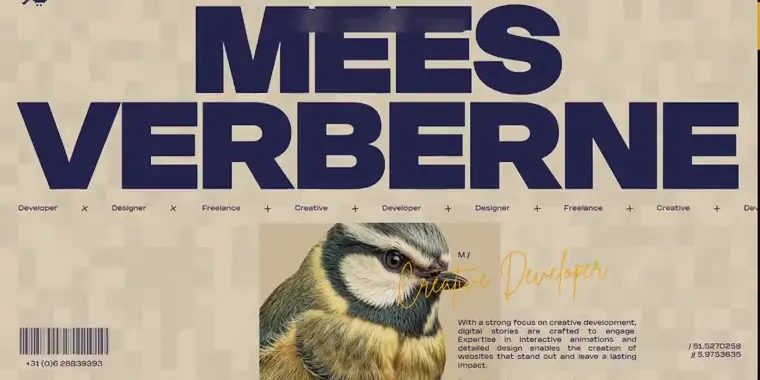 A playful site with a pixelated interactive background, smooth scrolling animations, and a quirky bird logo that reflects personality and skill.