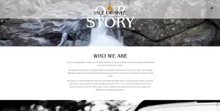 Isle of Skye Distillers’ About page blends Scottish heritage with modern elegance. Stunning landscape visuals and heartfelt storytelling capture the brand’s passion for crafting premium spirits.
