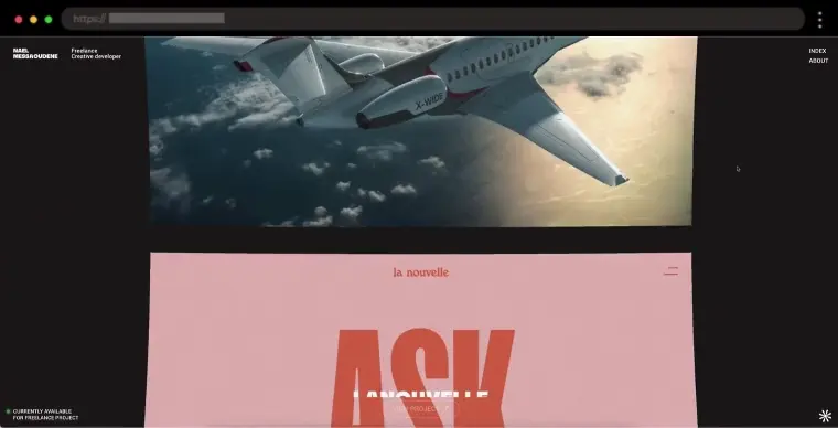 Nael Messaoudene’s portfolio showcases a minimalist scrolling design that flows seamlessly between sections, emphasizing clarity, smooth navigation, and the artist’s creative work.
