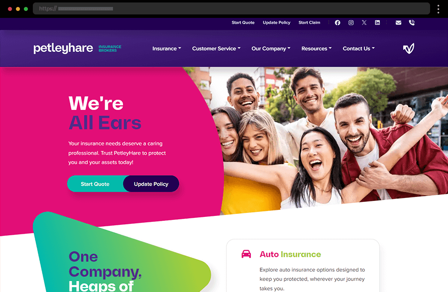 PetleyHare’s colorful, modern design uses smart structure and interactivity to make browsing policies effortless while showcasing trust and expertise.