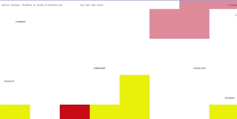 Pierre’s portfolio blends minimalism with creativity, featuring colorful geometric blocks that transform into project previews on hover for an engaging browsing experience.