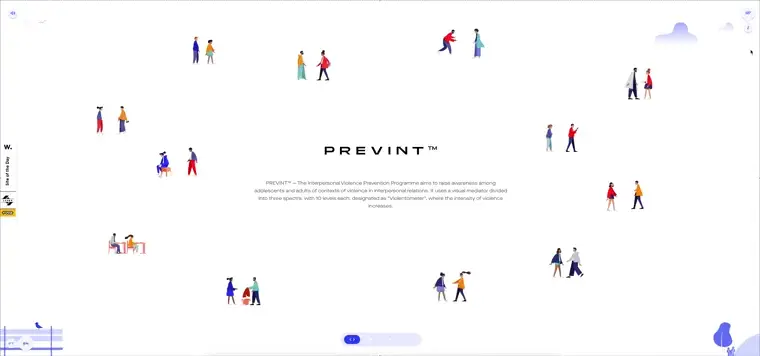 Prevint’s site uses horizontal scrolling and flat illustrations to guide visitors through key social awareness topics, blending minimalist design with meaningful storytelling.